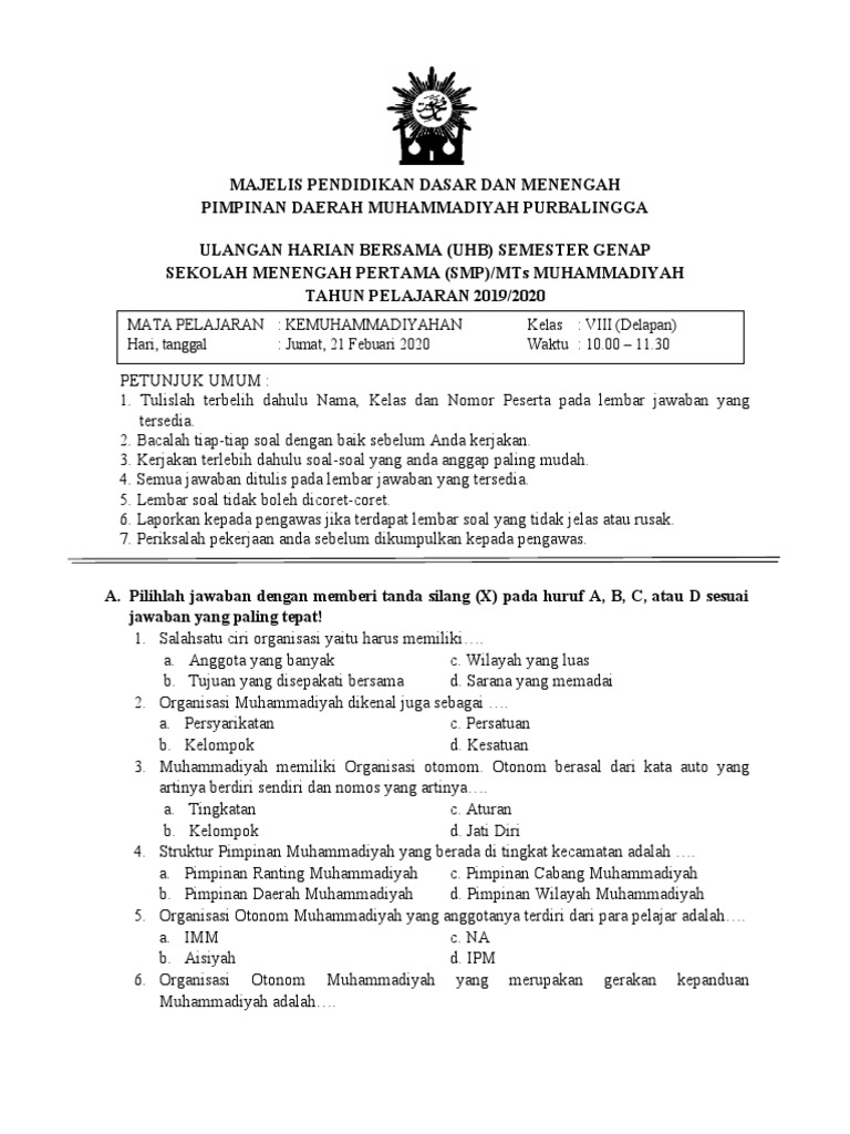 Download soal kemuhammadiyahan kelas 8 semester 2. Jadi besar harapan, berkenan untuk memberikan komentar, saran atau masukan. Kliping olahraga bagian 2 soal uts bahasa arab kelas 8 semester ganjil. Soal pilihan ganda kemuhammadiyahan kelas xi. Soal tes cpns logika matematika.