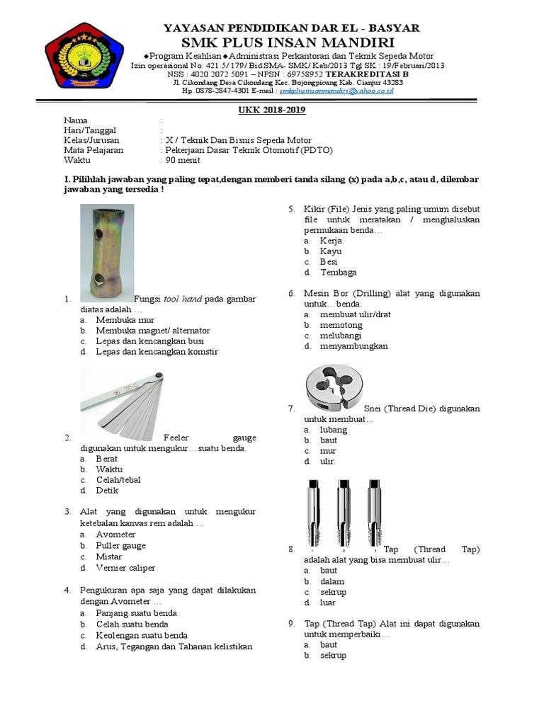 Soal Teknik Dasar Otomotif Kurikulum 2013 : Soal Teknik Dasar Otomotif Beserta Jawaban - Buku yang akan dibagikan ini merupakan buku dalam bentuk pdf yang dapat dipergunakan secara mudah.. Semua mata pelajaran termasuk teknologi dasar otomotif. May 28, 2020 · soal pekerjaan dasar teknik otomotif (pdto) kurikulum 2013 revisi ini terdiri dari 40 soal pilihan ganda dari berbagai kompetensi yang ada. May 28, 2020 · soal teknologi dasar otomotif (tdo) kurikulum 2013 revisi ini sejumlah 40 soal disertai kunci jawabannya. Berikut merupakan rpp teknologi dasar otomotif kurikulum 2013 revisi. Aug 15, 2021 · download gratis contoh referensi rencana pelaksanaan pembelajaran rpp k13 kurikulum 2013 untuk mata pelajaran teknik dasar otomotif di sini berikut adalah cuplikan dari isi rpp.